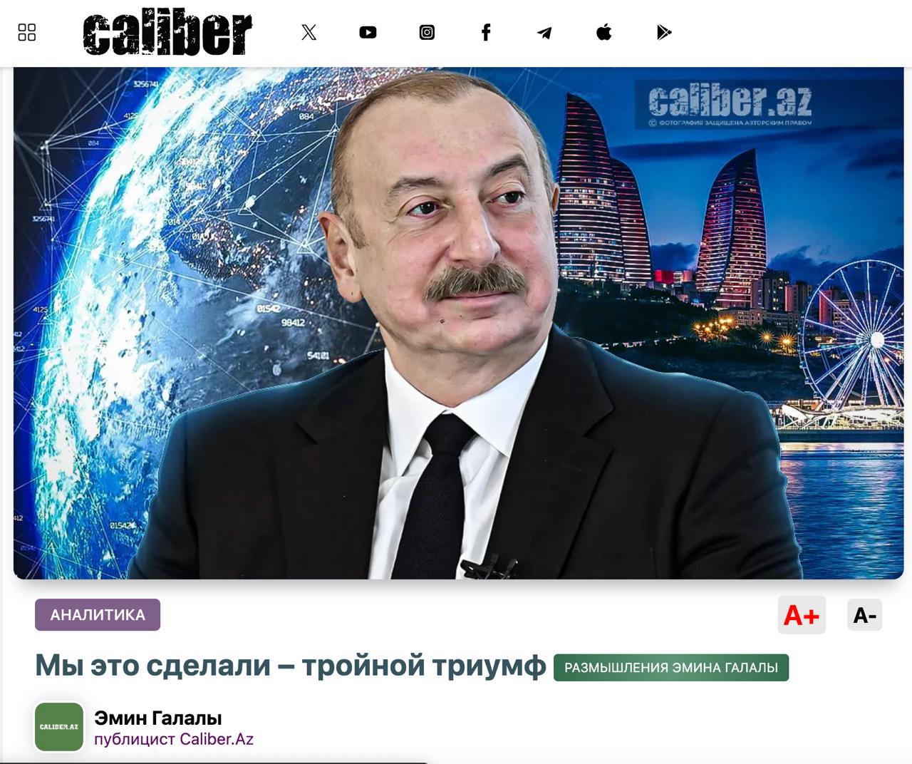 Детали. Колумнист интернет-издания Caliber Эмин Галалы заявил о «тройном триумфе» азербайджанского президента. «Можно, в принципе, ограничиться простой констатацией фактов. Президент Ильхам Алиев может праздновать очередной успех. Он в который раз добился максимально желаемого результата. Защитил национальное достоинство страны», — написал он.