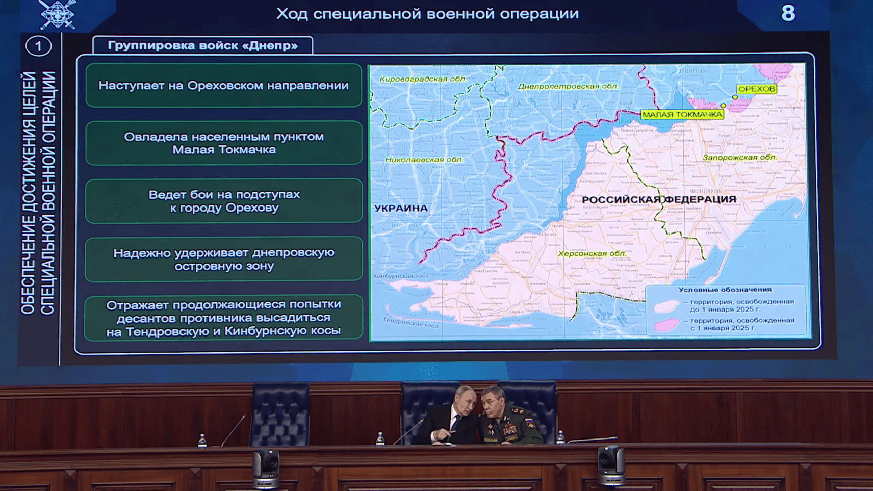 Цитата. «Группировка „Днепр“ наступает на Ореховском направлении. Овладела населенным пунктом Малая Токмачка и ведет бои на подступах к городу Орехову. Взятие под контроль данного населенного пункта создаст благоприятные условия для дальнейшего наступления на северо-западе Запорожской области», — сообщил Белоусов.