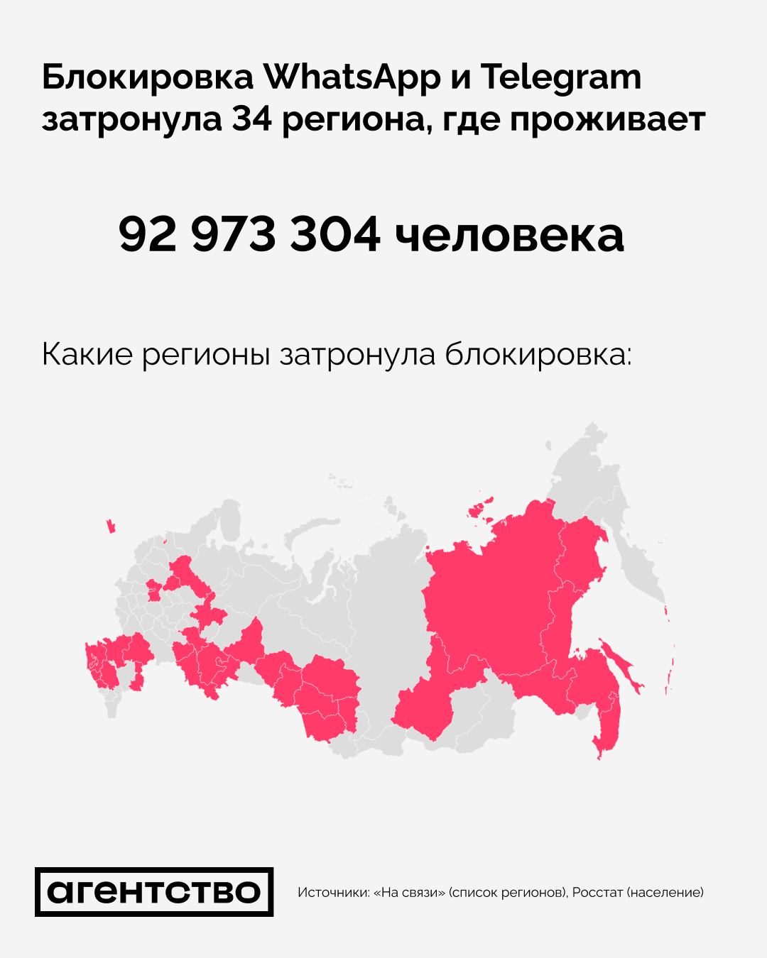 Детали. Общее население 34 регионов, где жители пожаловались на блокировки, — 92 973 304 человека, следует из результатов переписи населения 2021 года.