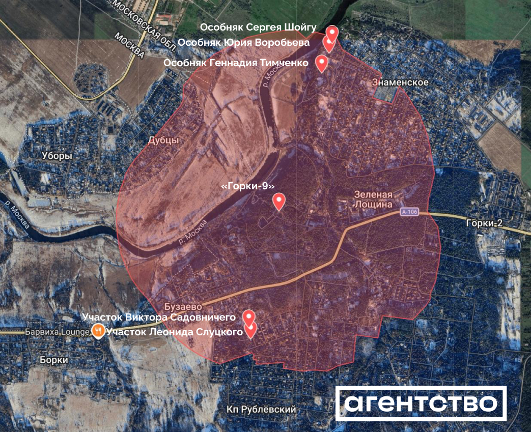 Детали. Общая площадь новой охранной зоны превысит шесть квадратных километров, говорится в документе. Кроме резиденции «Горки-9», участков Тимченко и Шойгу, внутри охранной зоны окажутся дома бывшего зятя президента Кирилла Шамалова, соратника Шойгу Юрия Воробьева, ректора МГУ Виктора Садовничего и депутата Госдумы Леонида Слуцкого, свидетельствует «Путеводитель по Рублевке» «Проекта».