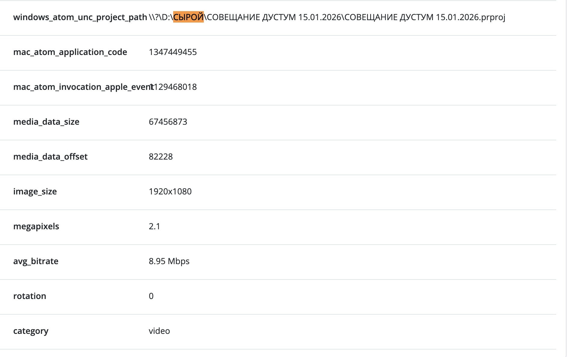 - ️Согласно метаданным, файл был создан 15 января в 14:04 и позднее редактировался в 17:04. Видео было собрано из множества исходников и монтировалось в Adobe Premiere Pro на устройстве с операционной системой Windows. Файлы хранились в папке «СЫРОЙ\СОВЕЩАНИЕ ДУСТУМ 15.01.2026». А видео на компьютере называлось «СОВЕЩАНИЕ ДУСТУМ 15.01.2026». Дустум — это кличка Адама Кадырова.