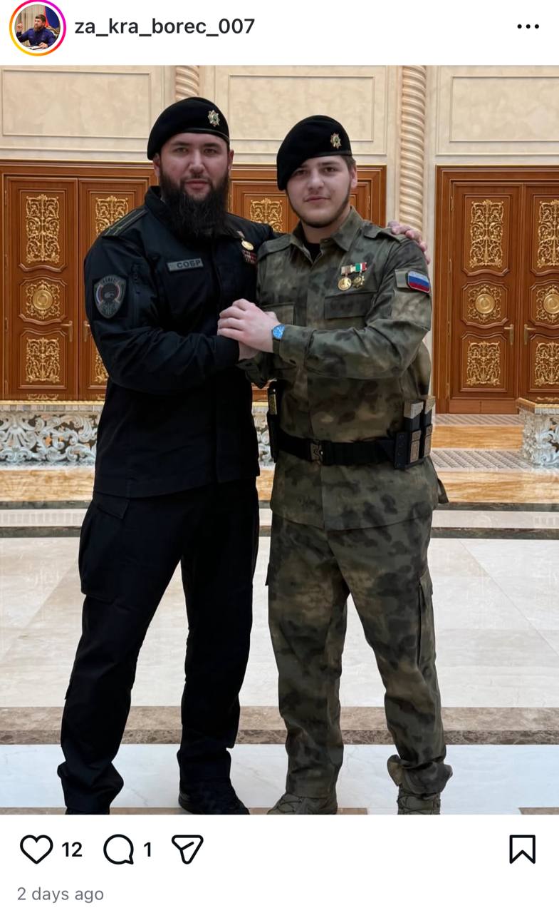 - ️На видео совещания Кадыров был в той же одежде, с теми же часами и наградами, что и на фото, которые были опубликованы в Instagram за день-два до публикации видео, то есть до аварии. Они были опубликованы знакомыми Адама Кадырова, которые тегнули сына главы Чечни на своих публикациях. На эти фотографии обратил внимание чеченский оппозиционный блог NIYSO. На нескольких фото Кадыров-младший сфотографирован в тех же интерьерах, что и на видео, выложенном Рамзаном Кадыровым в субботу.
