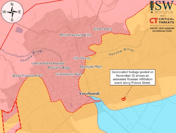 - Согласно оценке американского Института изучения войны (ISW), контроль России над всем Покровском также пока не подтвержден, а небольшую часть города на северо-западе, согласно карте проекта, контролируют ВСУ. ISW не подтверждает и полный контроль России над Волчанском.