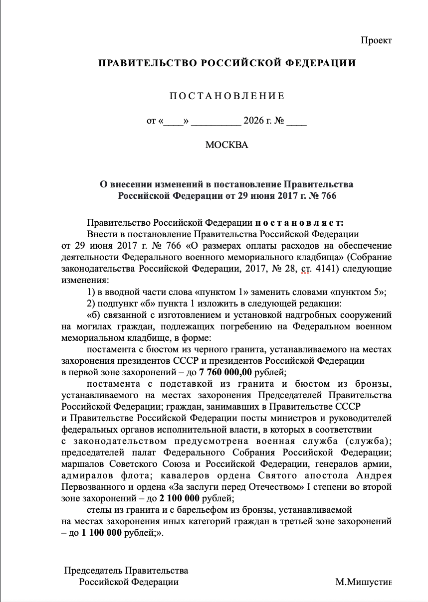 - ️Проект также устанавливает предельную стоимость могильных постаменов для других высокопоставленных чиновников.