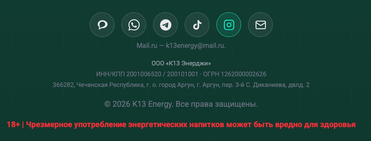 Кто производит энергетик? Согласно сайту напитка, его производит компания «К-13», зарегистрированная 9 апреля. Этой компанией владеет Ислам Висалиев, которого «Верстка» называет вероятным номиналом семьи Кадыровых. Издание отмечает, что, согласно утечкам, Висалиев в 2020 году получал зарплату в администрации Грозненского муниципального района, а в телефонных книгах он подписан как «помощник Рустама Абазова» — экс-главы района.