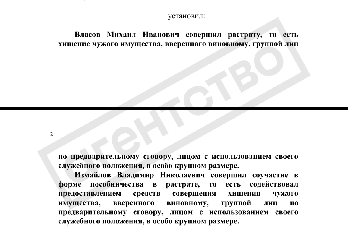 - В опубликованном на сайте Мосгорсуда приговоре Власову и Измайлову сумма нанесенного фигурантами ущерба скрыта. В августе Мосгорсуд оставил в силе наказание Власову и Измайлову, изменив только сумму ущерба (на сколько, не уточняется).