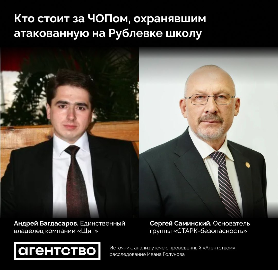 • Основатель группы «СТАРК-безопасность» — офицер в отставке Сергей Саминский. В начале 2010-х он якобы отошел от дел, возглавив саморегулируемую организацию «Школа безопасности», созданную при участии департамента образования Москвы. Президентом группы вместо него сталАлександр Гадалов, который работал у Саминского главным бухгалтером. Сам Саминский в 2022 году занялся выстраиванием системы охраны школ в оккупированных регионах Украины.
