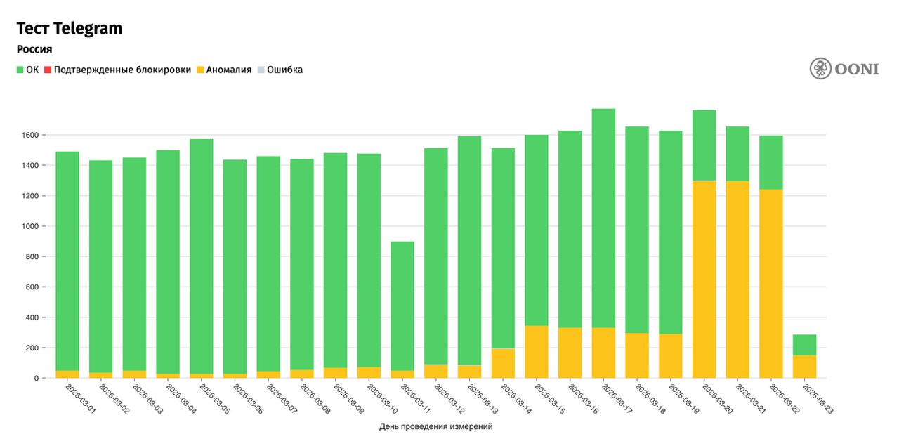 • В выходные количество аномалий при использовании Telegram было сопоставимо с цифрами официально заблокированного Signal и фактически заблокированного WhatsApp — от 87% аномалий. В понедельник доля аномалий при заходе в Signal составляет 87%, при заходе в WhatsApp — 93%.