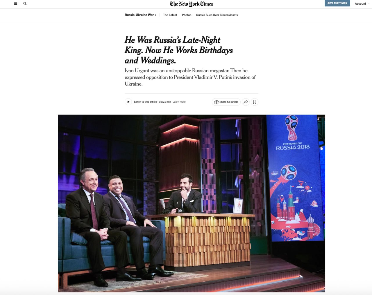 - ️Ургант не ответил на запросы The New York Times о комментариях. Однако он ясно дал понять, что не теряет надежды на свою карьеру в России. На вопрос, заданный ему на московской кинопремьере в 2023 году, появится ли он когда-нибудь снова на российском телевидении, господин Ургант ответил: «Конечно, я вернусь».