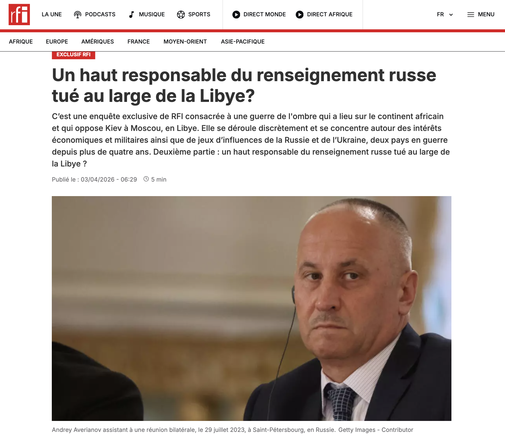 Генерал ГРУ Андрей Аверьянов, который возглавляет отвечающую за диверсии за рубежом воинскую часть № 29155, погиб на борту нефтяного танкера «Кендил» (Qendil), который был атакован в ночь на 19 декабря 2025 года в Средиземном море, сообщило французское издание RFI со ссылкой на ливийские источники. «Это совершенно фейковая история», — написал журналист-расследователь Христо Грозев. «Агентство» проверило российский паспорт Аверьянова с помощью сервиса проверки паспортов. Он действителен.