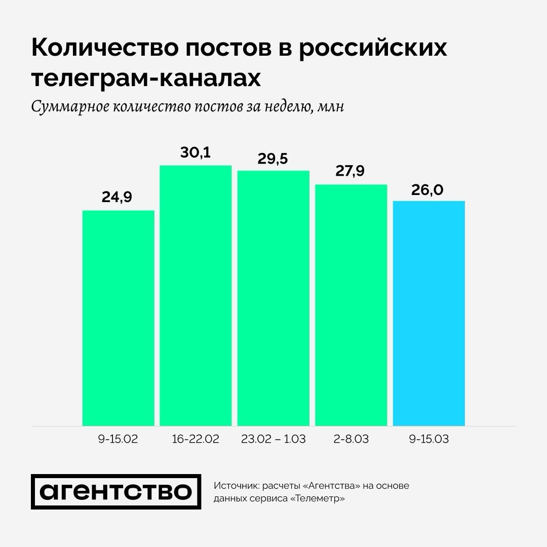 Усиление блокировок Telegram сказалось на его аудиторных показателях, свидетельствуют данные сервиса Telemetr, предоставленные «Агентству». После субботы, когда начались массовые жалобы на работу сервиса, совокупное число просмотров сократилось на 20−25%.
