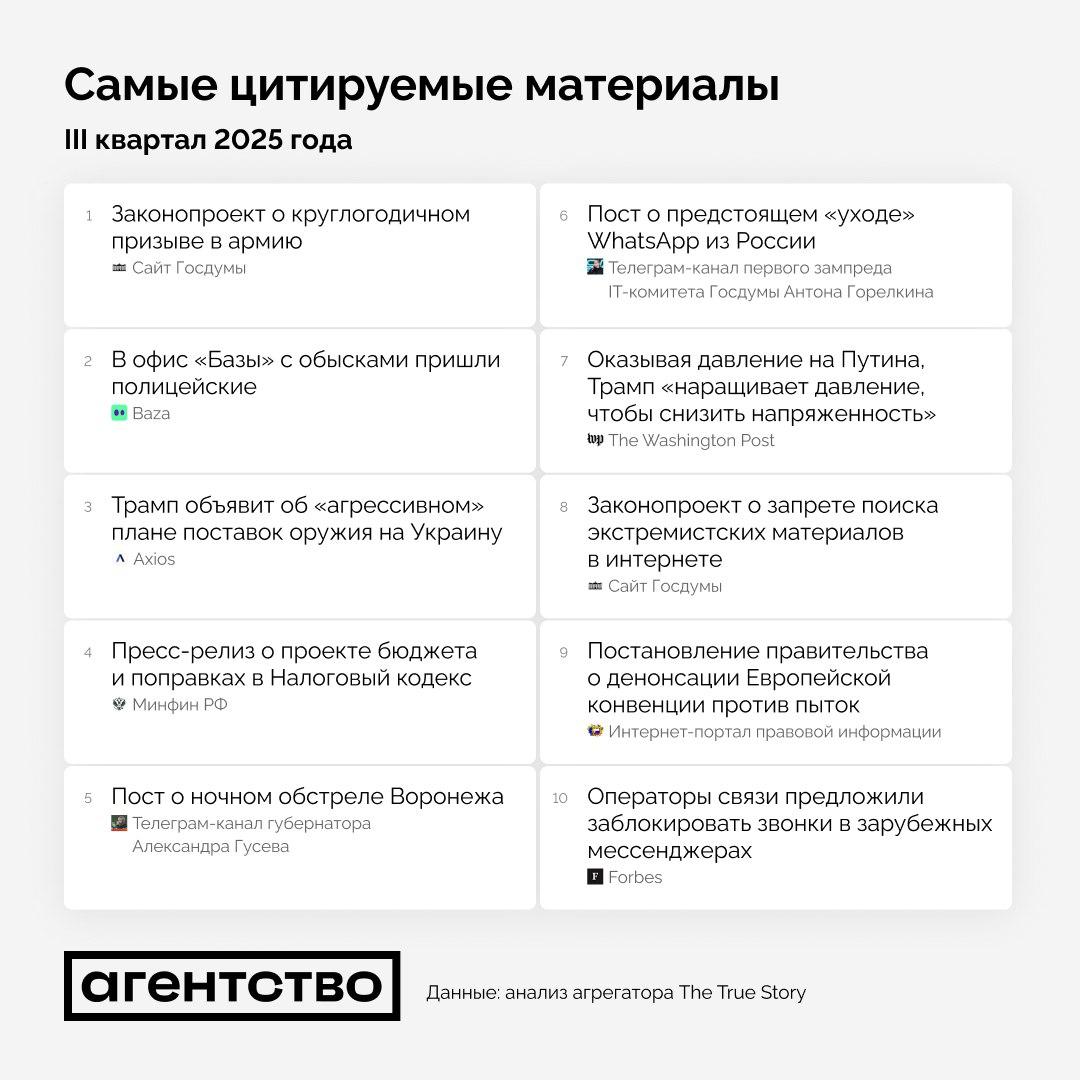 - ️В десятке самых цитируемых материалов III квартала подавляющее большинство посвящено событиям, которые стали следствием войны в Украине и оказывают (или могут оказать влияние) на влияние на жизнь россиян. Топ-10:
