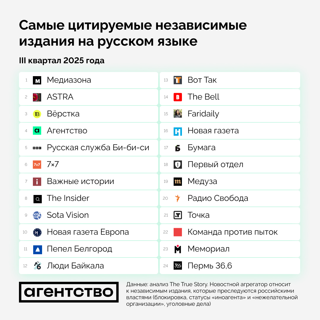 Больше новостей, о которых боятся писать в России, — в наших аккаунтах в Telegram, Twitter, Facebook и рассылке «Агентства»