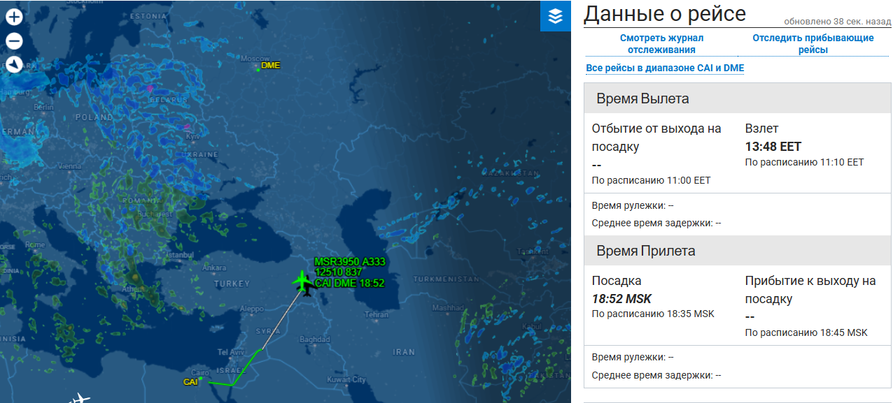 Детали. Самолет Airbus A330 авиакомпании Egypt Air с депортированными из США россиянами вылетел из Египта в 13:48 по местному времени (14:48 мск), свидетельствуют данные сервиса Flightaware. В Москве лайнер должен приземлиться в 21:23.