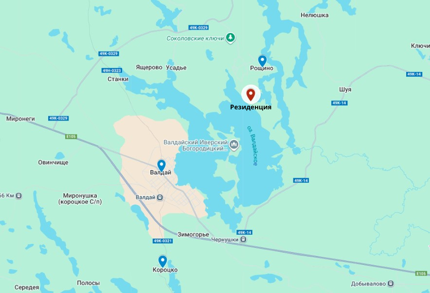 - Согласно данным утечек, ИП Игорь Большаков зарегистрирован в Валдае (5 км по прямой от резиденции на противоположном берегу Валдайского озера). Он также имеет дом в деревне Короцко (8 км от резиденции). Связи с Большакова с Рощино «Агентство» не нашло.