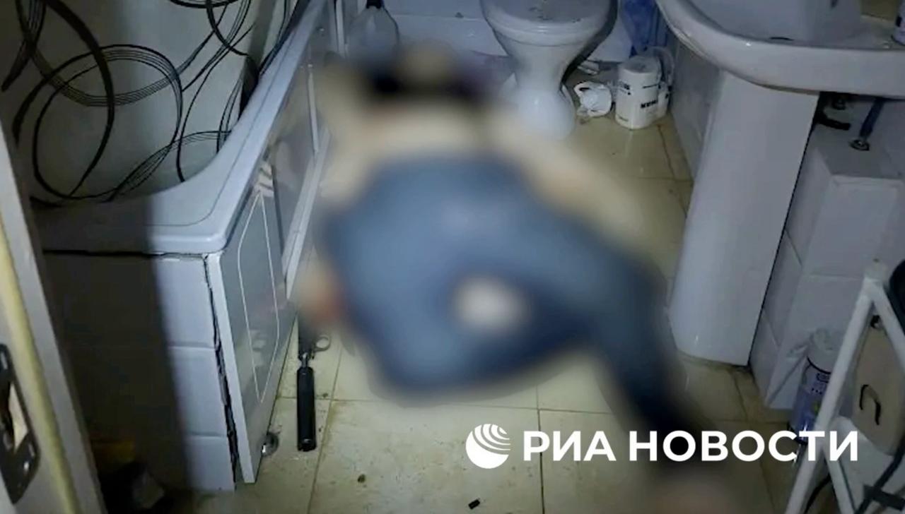 • Всего на видео показаны интервью с пятью задержанными (у всех заблюрены лица). В конце ролика показывается отретушированная фотография убитого. Он лежит в туалете, рядом с унитазом, рядом с ним лежит пистолет с глушителем.