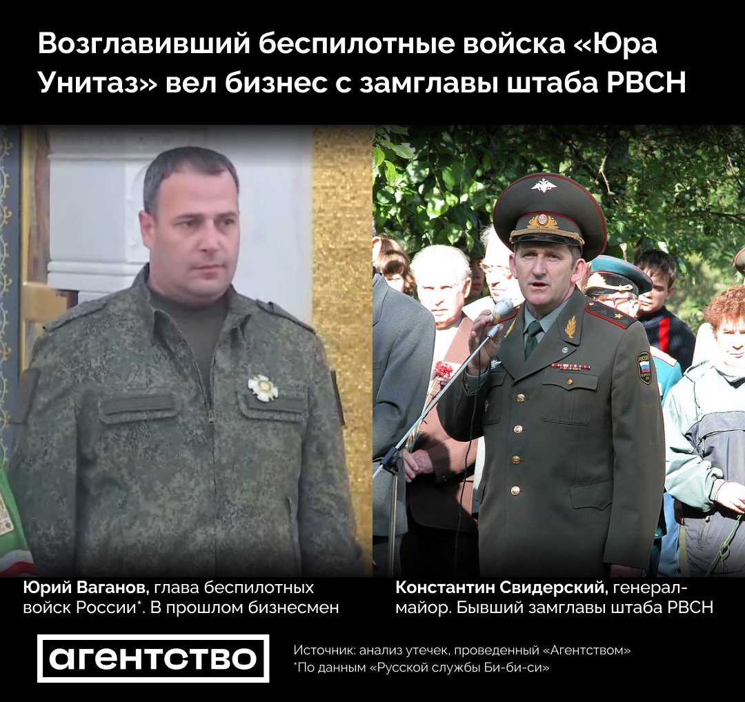 Бизнесмен из Электростали Юрий Ваганов, известный под позывным «Юра Унитаз», возглавил новые войска беспилотных систем ВС РФ, сообщили z-блоги и подтвердила «Русская служба Би-би-си». За годы войны предприниматель стал одним из главных поставщиков FPV-дронов для российской армии. Это не первый его бизнес, который он вел вместе с военными. В начале 2010-х у него была компания вместе с бывшим замглавы штаба ракетных войск стратегического назначения (РВСН) генерал-майором Константином Свидерским, установило «Агентство». Это могло помочь ему обзавестись нужными связями.