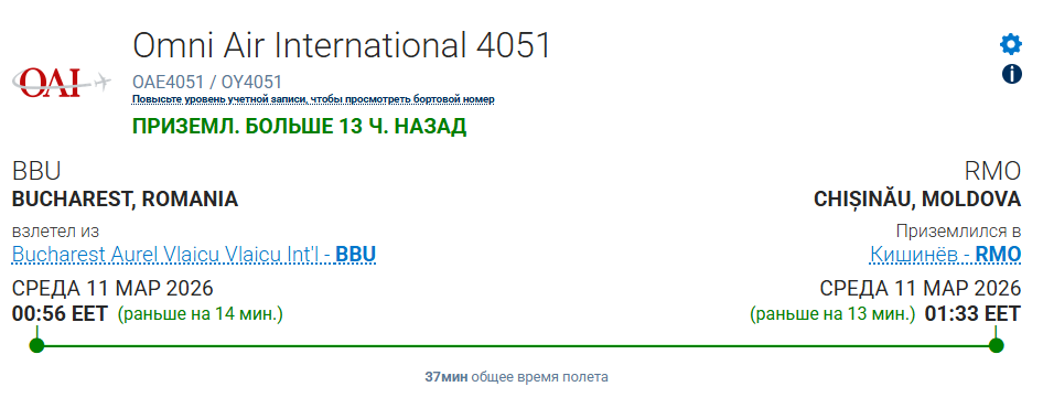 Детали. Чартерный Boeing-767, вылетевший накануне из США в Албанию, приземлился во вторник в Тиране, свидетельствуют данные сервиса FlightAware. Затем самолет вылетел в Бухарест, а оттуда — в Кишинев, где сел в 02:33 мск.