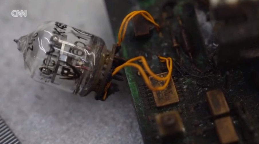 • Сотрудник лаборатории Сергей показал журналисту CNN найденные в ракете микросхемы, отметив при этом: «Старьё. Все старое. И все российское».